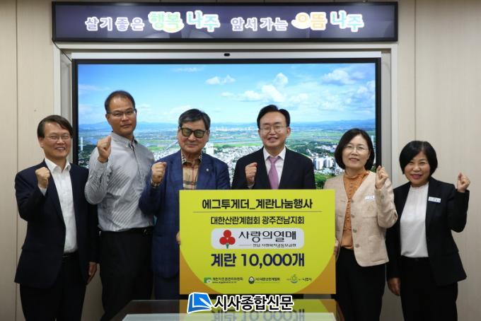 ³ªÁÖ½Ã(½ÃÀå À±º´ÅÂ)´Â Áö³ 24ÀÏ ¼ÒȸÀǽǿ¡¼ °è¶õÀÚÁ¶±Ý°ü¸®À§¿øÈ¸(ÀÇÀå ±è¾ç±æ)¿Í ´ëÇÑ»ê¶õ°èÇùȸ ³ªÁÖÁöºÎ(ÁöºÎÀå ÃÖ¹®±â)·ÎºÎÅÍ 300¸¸ ¿ø »ó´çÀÇ °è¶õ 1¸¸ °³(340ÆÇ)¸¦ Àü´Þ¹Þ¾Ò´Ù°í 27ÀÏ ¹àÇû´Ù.
