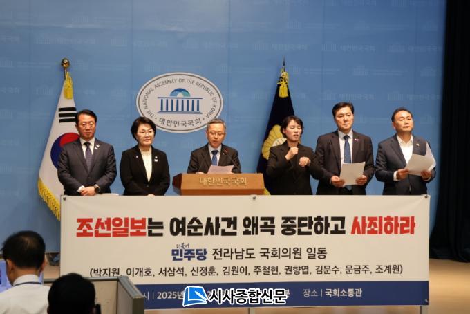 Àü³² Áö¿ª ¹ÎÁÖ´ç ÀÇ¿øµéÀº 29ÀÏ ±¹È¸ ¼ÒÅë°ü¿¡¼ ±âÀÚȸ°ßÀ» ¿°í ¡°Á¶¼±ÀϺ¸°¡ ¿©¼ø»ç°Ç 77Áֱ⸦ ¸Â¾Æ ´ëÅë·ÉÀÇ Ã߸ð ¸Þ½ÃÁö¸¦ ¿Ö°îÇϰí, Èñ»ýÀÚ¿Í À¯Á·ÀÇ ¸í¿¹¸¦ Áþ¹â¾Ò´Ù¡±°í ºñÆÇÇß´Ù.