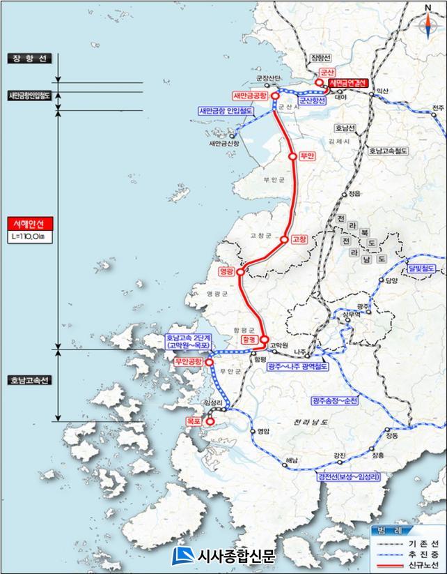 ¼ÇؾÈöµµ ³ë¼±Àº ÃÑ ¿¬Àå 110km, ÃÑ»ç¾÷ºñ 4Á¶ 7919¾ï¿ø ±Ô¸ð·Î, ¼Çؼ±(¼È¼º~È«¼º)°ú ÀåÇ×¼±(È«¼º~±º»ê), »õ¸¸±Ý¼±(±º»ê~»õ¸¸±Ý)À» ÀÕ´Â ¼ÇØ¾È Ã¶µµÃàÀÇ ¸¶Áö¸· ´ÜÀý±¸°£À» ¸Þ¿ì´Â ÇÙ½É ±¸°£ÀÌ´Ù.±×·¯³ª ÇöÀç ±¹ÅäºÎÀÇ Á¦4Â÷ ±¹°¡Ã¶µµ¸Á±¸Ãà°èȹ(2021~2030³â)¿¡´Â ¼ÇؾÈöµµ »ç¾÷ÀÌ ¡®Ãß°¡ °ËÅä»ç¾÷¡¯À¸·Î¸¸ µÇ¾îÀÖ¾î Á¦5Â÷ °èȹ(2026~2035³â)¿¡¼´Â ¡®½Å±Ô »ç¾÷¡¯À¸·ÎÀÇ ¹Ý¿µÀÌ Àý½ÇÇÑ »óȲÀÌ´Ù.