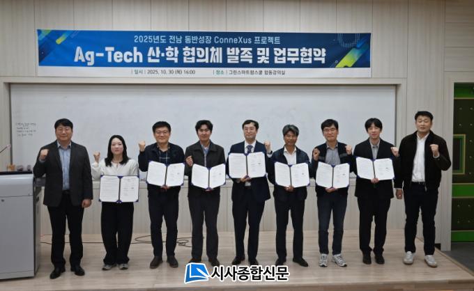 'Ag-Tech »ê¡¤ÇÐ ÇùÀÇü'´Â Áö¿ª ±â¾÷ÀÇ ±â¼ú ¼ö¿ä¸¦ ¹Ý¿µÇϰí, ´ëÇÐÀÇ ¿¬±¸ ¿ª·®°ú ÇöÀå ±â¼úÀ» ¿¬°èÇØ Áö¼Ó °¡´ÉÇÑ Çõ½Å »ýŰ踦 ±¸ÃàÇϱâ À§ÇØ ¹ßÁ·Çß´Ù. À̹ø Çù¾à¿¡´Â (À¯)±ÝÈÀÌ¿£¿¡½º(´ëÇ¥ ¼ÇرÙ), À̳ëÆÊÅ×Å©(´ëÇ¥ ¹Ú¼ºÈñ), ¢ßÇüÁ¦»ê¾÷(´ëÇ¥ ¼ÛÀÎÈ£), ÂüÅ×Å©(´ëÇ¥ ±èÁø¿µ), ¢ß¼öÀÎ(´ëÇ¥ ±è¼ö¿ë), ¢ßÈÞÀÎÅØ(´ëÇ¥ ±èÁ¾½Ç) µî ÃÑ 6°³ Áö¿ª ±â¾÷ÀÌ Âü¿©Çß´Ù.