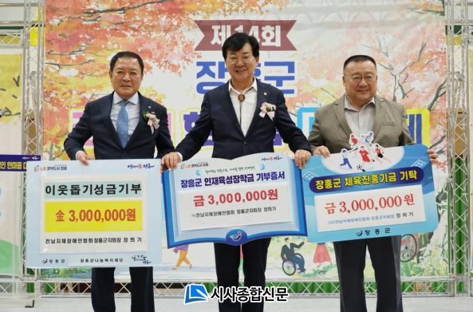 Áö³ 11¿ù 4ÀÏ, ÀåÈï½Ç³»Ã¼À°°ü¿¡¼ ¿¸° ¡®Á¦14ȸ ÀåÈﱺ Àå¾ÖÀÎ ÇѸ¶À½ ´ëÃàÁ¦¡¯ÇöÀå¿¡¼ Àü¶ó³²µµÁöüÀå¾ÖÀÎÇùȸ ÀåÈﱺÁöȸ°¡ ÀÎÀçÀ°¼ºÀåÇÐ±Ý 300¸¸ ¿øÀ» ±âºÎÇß´Ù.