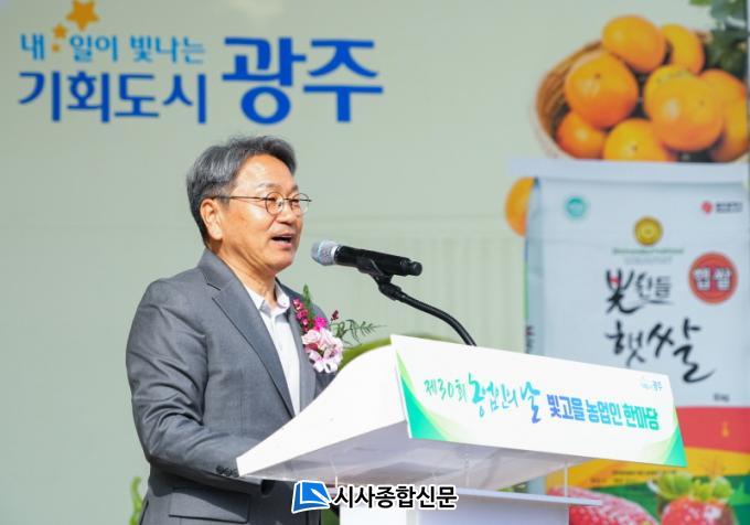 °±âÁ¤ ±¤ÁÖ½ÃÀåÀº ¡°³ó¾÷ÀÎÀÇ ³¯Àº ³ó¾÷ÀÇ Á߿伺°ú ³ó¾÷ÀÎÀÇ ³ë°í¸¦ µÇ»õ±â´Â ¶æ±íÀº ³¯ÀÌ´Ù¡±¸ç ¡°AI Á߽ɵµ½Ã ±¤ÁÖ¿¡ °É¸Â°Ô, AI±â¼úÀ» Ȱ¿ëÇÑ ½º¸¶Æ®ÆÊ Áö¿øÀ» È®´ëÇÏ´Â µî ³ó¾÷Á¤Ã¥À» Áö¼Ó ÃßÁøÇϰڴ١±°í ¸»Çß´Ù.