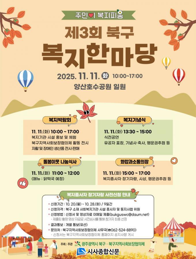 ¿ÃÇØ·Î 3ȸ°¸¦ ¸Â´Â ¡®º¹ÁöÇѸ¶´ç¡¯Àº ºÏ±¸ Áö¿ª»çȸº¸ÀåÇùÀÇüÀÇ ÁÖ°üÀ¸·Î ¡ãº¹Áö ¹Ú¶÷ȸ ¡ãµ¹º½ÀÌ¿ô ³ª´®½Ä»ç ¡ã±â³ä½Ä ¡ãÈÇÕ°ú ¼ÒÅëÀÇ Àå ¼øÀ¸·Î ÁøÇàµÈ´Ù.