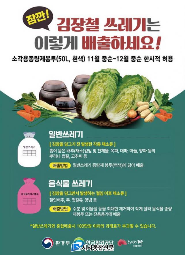 ÀÌ¿¡ µû¶ó ½Ã´Â ¼ö°Å¿î¹Ý ¹× ó¸® Áö¿¬À¸·Î ÀÎÇÑ ½Ã¹ÎµéÀÇ ºÒÆíÀ» ¿¹¹æÇϱâ À§ÇØ º»°ÝÀûÀÎ ±èÀåöÀÌ ½ÃÀ۵Ǵ ÀÌ´Þ Áß¼øºÎÅÍ ¿À´Â 12¿ù Áß¼ø±îÁö ¾à ÇÑ ´Þ µ¿¾È ÇѽÃÀûÀ¸·Î ±èÀå¾²·¹±â¸¦ 50LÂ¥¸® ÀϹݾ²·¹±â ¼Ò°¢¿ë ºÀÅõ¿¡ ´ã¾Æ ¹èÃâÇÒ ¼ö ÀÖµµ·Ï Çã¿ëŰ·Î Çß´Ù.