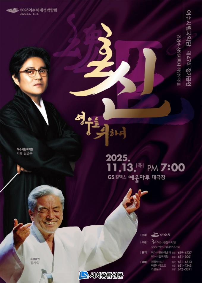 ¿©¼ö½Ã¸³±¹¾Ç´ÜÀº À̹ø ¹«´ë¸¦ ÅëÇØ ¡®¿µ¿õ¡¯¿¡ ´ëÇÑ »õ·Î¿î ½Ã°¢À» À½¾ÇÀ¸·Î Ç®¾î³»¸ç