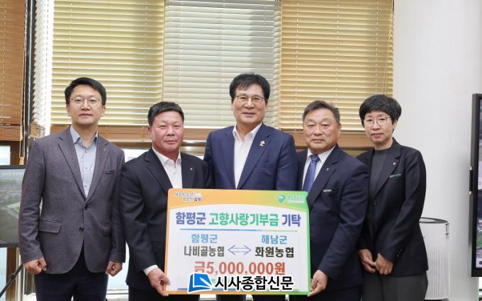 ÇÔÆò±ºÀº 11ÀÏ ¡°ÇÔÆò ³ªºñ°ñ³óÇù°ú ÇØ³² È¿ø³óÇùÀÌ °íÇâ»ç¶û±âºÎÁ¦¿¡ 500¸¸ ¿øÀ» »óÈ£ ±âºÎÇß´Ù¡±°í ¹àÇû´Ù.