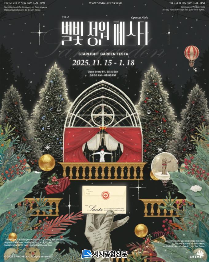 ¿ÃÇØ º°ºû ÃàÁ¦´Â ¡®ºûÀÌ ¸Ó¹«´Â Á¤¿ø¡¯À» ÁÖÁ¦·Î, ÇÑ ÇØ µ¿¾È ¼¼»óÀ» À§ÇØ ´Þ·Á¿Â »êŸŬ·Î½º°¡ Àá½Ã ¼ûÀ» °í¸£±â À§ÇØ Ã£¾Æ¿Â °÷, ¡®Çس²ÀÇ ºñ¹ÐÁ¤¿ø, »êÀÌÁ¤¿ø¡¯ À̶ó´Â »ó»ó¿¡¼ Ãâ¹ßÇß´Ù. ÃàÁ¦±â°£ µ¿¾È »êÀÌÁ¤¿øÀº »êŸ°¡ ¸Ó¹«¸£¸ç ½°°ú À§·Î¸¦ ¾ò´Â Á¤¿øÀ» ¸ðƼºê·Î, ¹æ¹®°´¿¡°Ô µû¶æÇÑ ºû°ú °¨¼ºÀ» ÀüÇÏ´Â °Ü¿ïÀÇ Çdzó·Î ²Ù¸çÁø´Ù.
