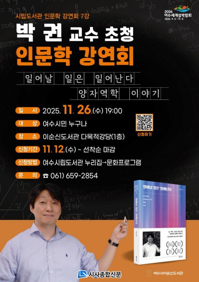 À̹ø °¿¬Àº ¡®ÀϾ ÀÏÀº ÀϾ٠¾çÀÚ¿ªÇÐ À̾߱⡯¸¦ ÁÖÁ¦·Î, ¾çÀÚ¿ªÇÐ ¿ø¸®¸¦ ÅëÇØ ¿ìÁÖ¿Í Àΰ£ÀÇ Á¸Àç¿¡ ´ëÇÑ ¼³¸í°ú »îÀÇ Åµµ¿¡ °üÇØ ±íÀº ÅëÂûÀ» Á¦½ÃÇÒ ¿¹Á¤ÀÌ´Ù.