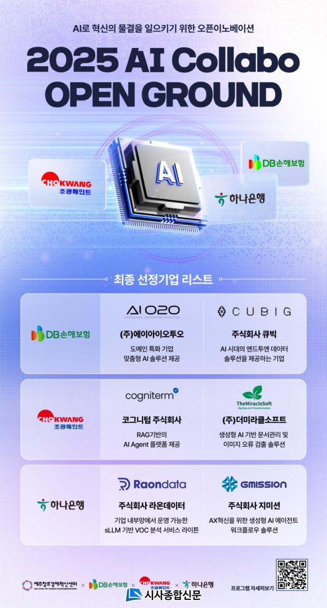 Á¦ÁÖ¼¾ÅÍ¿Í DB¼ÕÇØº¸Çè, Á¶±¤ÆäÀÎÆ®, ÇϳªÀºÇàÀº Áö³ 6¿ù AI »ê¾÷ÀÇ ÁÖ¿ä Ű¿öµå¿Í °øÅë °úÁ¦¸¦ µµÃâÇØ AI »ê¾÷ »ýŰè Ȱ¼ºÈ¿Í ½Å»ê¾÷ ºÐ¾ß À¯¸Á ½ºÅ¸Æ®¾÷ ¹ß±¼À» ¸ñÇ¥·Î º» ÇÁ·Î±×·¥À» ±âȹÇß´Ù. º¸Çè, °ÇÃà°ø¾÷, ±ÝÀ¶ µî »ê¾÷º° ¼ö¿ä±â¾÷ °úÁ¦¸¦ ¼³Á¤Çϰí, ¿ÀÇÁ¶óÀÎ ¹Ô¾÷°ú Áö¼ÓÀûÀÎ ¹ÌÆÃÀ» ÁøÇàÇÑ °á°ú ÃÖÁ¾ 6°³ ½ºÅ¸Æ®¾÷ÀÌ ¼±Á¤µÆ´Ù.