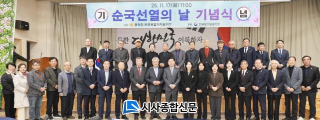 [½Ã»çÁ¾ÇսŹ® = ¿À½ÂÅà ±âÀÚ] ÀüºÏƯº°ÀÚÄ¡µµ ±è°ü¿µ µµÁö»ç´Â 11¿ù 17ÀÏ ÀüºÏº¸ÈÆÈ¸°ü¿¡¼ ¿¸° Á¦86ȸ ¼ø±¹¼±¿ÀÇ ³¯ ±â³ä½Ä¿¡ Âü¼®ÇØ ¼ø±¹¼±¿µéÀÇ ¼þ°íÇÑ Èñ»ýÁ¤½ÅÀ» ±â¸®°í À¯°¡Á·°ú ±¤º¹È¸¿øµéÀ» À§·ÎÇß´Ù.