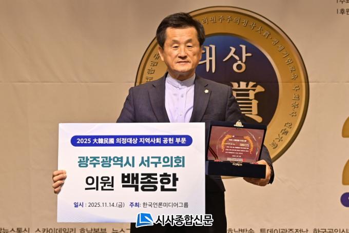 | ±¤ÁÖ ¼±¸ÀÇȸ ¹éÁ¾ÇÑ ÀÇ¿ø, 2025 ´ëÇѹα¹ ÀÇÁ¤´ë»ó ¼ö»ó Áö¹æÀÚÄ¡ ¹ßÀü ±â¿© °ø·Î ³ÀÓ ±Øº¹ Áö¿ø Á¶·Ê Á¦Á¤ ¹× Áö¿ª»çȸ Çö¾È ÇØ°á°ú º¹¸® ÁõÁø¿¡ Çå½Å