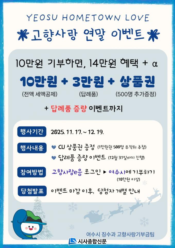 ¿©¼ö½Ã °ü°èÀÚ´Â ¡°10¸¸ ¿øÀ» ±âºÎÇϸé ÃÖ´ë 14¸¸ ¿ø ÀÌ»óÀÇ ÇýÅÃÀ» ¹ÞÀ» ¼ö ÀÖ´Â ¸¸Å À̹ø ¿¬¸» À̺¥Æ®°¡ ±âºÎ Âü¿©¸¦ À¯µµÇϰí Áö¿ª°æÁ¦¿¡µµ Ȱ·ÂÀ» ºÒ¾î³Ö´Â °è±â°¡ µÇ±â¸¦ ¹Ù¶õ´Ù¡±°í ¸»Çß´Ù.
