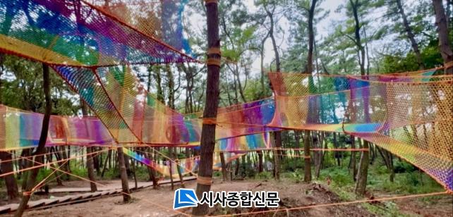 üÇè±³À° °ø°£Àº ¹«Áö°³³×Æ®¿Í ¹åÁÙ³îÀÌ µî ½£ üÇè ÇÁ·Î±×·¥ÀÌ ¿î¿µµÈ´Ù. Áö»ó 5m ³ôÀÌ¿¡ ¼³Ä¡µÈ ¹«Áö°³³×Æ®´Â 6°³ÀÇ °ø°£ÀÌ ³×Æ®·Î À̾îÁø ±¸Á¶·Î, ¾ÆÀ̵éÀÌ ³ª¹« »çÀ̸¦ ´©ºñ¸ç ¸ðÇèÇϵí Ȱµ¿ÇÒ ¼ö ÀÖ´Ù.