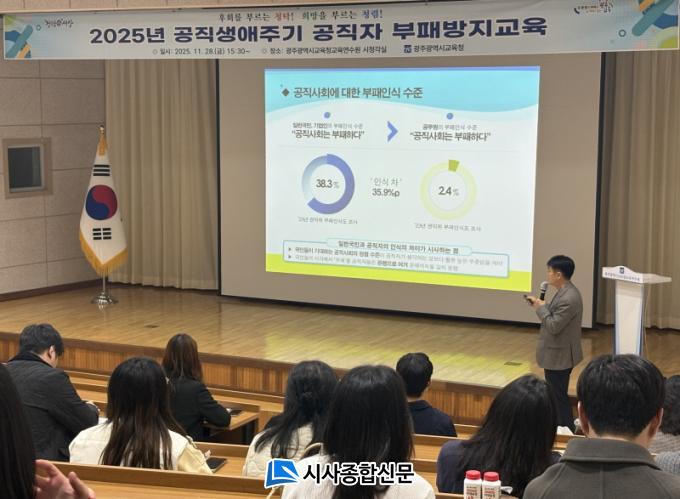 [½Ã»çÁ¾ÇսŹ® = ¿À½ÂÅà ±âÀÚ] ±¤Áֽñ³À°Ã»(±³À°°¨ ÀÌÁ¤¼±)Àº 28ÀÏ ±¤Áֽñ³À°Ã»±³À°¿¬¼ö¿ø ½Ãû°¢½Ç¿¡¼ ¡®°øÁ÷»ý¾ÖÁֱ⠰øÁ÷ÀÚ ºÎÆÐ¹æÁö±³À°¡¯À» ½Ç½ÃÇß´Ù.