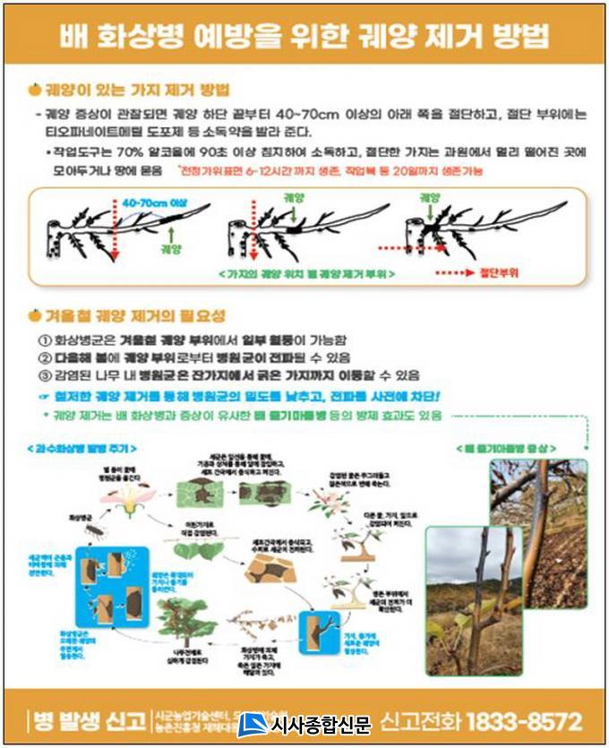 °ú¼öÈ»óº´Àº ³ª¹«°¡ ºÒ¿¡ ź °Íó·³ ¸»¶óÁ×´Â º´À¸·Î, »ç°ú¡¤¹è³ª¹« µî¿¡ ±âÁÖÇÏ´Â ¼¼±Õ¿¡ ÀÇÇØ ¹ß»ýÇÑ´Ù. º´¿ø±ÕÀº °Ü¿ïö Àú¿Â±â¿¡´Â Ȱµ¿À» ¸ØÃßÁö¸¸, °¡Áö¿Í Áٱ⿡ ±Ë¾ç(¾Ï°¥»ö º´¹Ý)À» Çü¼ºÇÑ Ã¤ ¿ùµ¿ÇØ ÀϺδ »ýÁ¸ÇϹǷÎ, öÀúÇÑ ±Ë¾ç Á¦°Å°¡ º´¿ø±Õ ¹Ðµµ¸¦ ³·Ãß°í ÀüÆÄ¸¦ Â÷´ÜÇÏ´Â °¡Àå È¿°úÀûÀÎ ¹æ¹ýÀÌ´Ù.