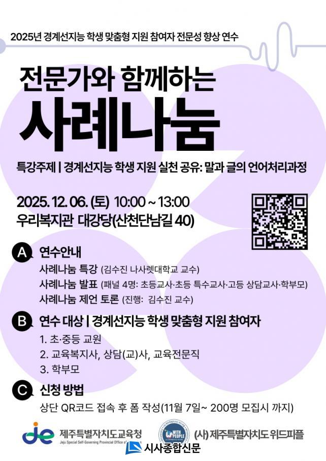 Áö³ 7¿ùºÎÅÍ¡®°æ°è¼±Áö´É Çлý ÀÌÇØ ¹× ±³½ÇÁö¿ø Àü·«¡¯À» ÁÖÁ¦·Î ÃÊ¡¤Áßµî ±³»ç¿Í ±³À°º¹Áö»ç, »ó´ã±³»ç, º¸È£ÀÚ µî 150¿© ¸íÀ» ´ë»óÀ¸·Î ÃÑ 8Â÷·Ê ¿î¿µµÇ°í ÀÖÀ¸¸ç °æ°è¼±Áö´É ÇлýÀÇ Æ¯¼º°ú ÇнÀ ȯ°æ ÀÌÇØºÎÅÍ ÀÛ¾÷±â¾ï¡¤¹®ÇØ·Â Çâ»ó, Á¤¼¡¤Çൿ ÁßÀç ¹æ¾È±îÁö ±³À° ÇöÀå¿¡¼ ¹Ù·Î Àû¿ëÇÒ ¼ö ÀÖ´Â ³»¿ëÀ» »ç·Ê Á᫐ °ÀÇ¿Í ½Ç½ÀÀ¸·Î Á¦°øÇß´Ù.