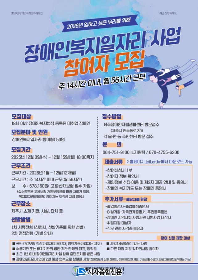 ÀÚ¼¼ÇÑ »çÇ×Àº Á¦ÁÖÀå¾ÖÀÎÀÚ¸³»ýȰ¼¾ÅÍ ´©¸®Áý(jcil.or.kr)¶Ç´Â ÀüÈ ¢Ï 064-751-9100(ILÁö¿øÆÀ), 070-4755-6200À¸·Î ¹®ÀÇÇÏ¸é µÈ´Ù.