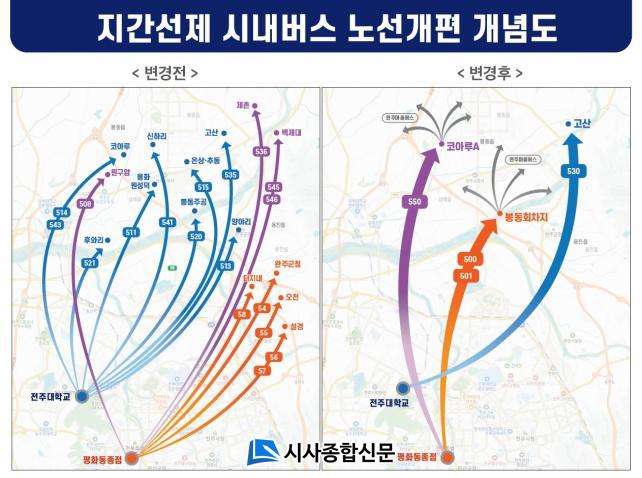 ÀüÁֽô ½Ã¹ÎµéÀÇ ´ëÁß±³Åë ÀÌ¿ë ÆíÀǸ¦ ȹ±âÀûÀ¸·Î °³¼±Çϰí, È¿À²ÀûÀÎ ´ëÁß±³Åë ü°è¸¦ ±¸ÃàÇϱâ À§ÇØ ÃßÁøÇØ ¿Â ¡®ÀüÁÖ-¿ÏÁÖ ½Ã³»¹ö½º Áö°£¼±Á¦¡¯ ºÀµ¿¡¤¿ëÁø ¹æ¸é ³ë¼± °³ÆíÀ» »õÇØ ù³¯ºÎÅÍ ½ÃÇàÇÒ °èȹÀ̶ó°í 9ÀÏ ¹àÇû´Ù.