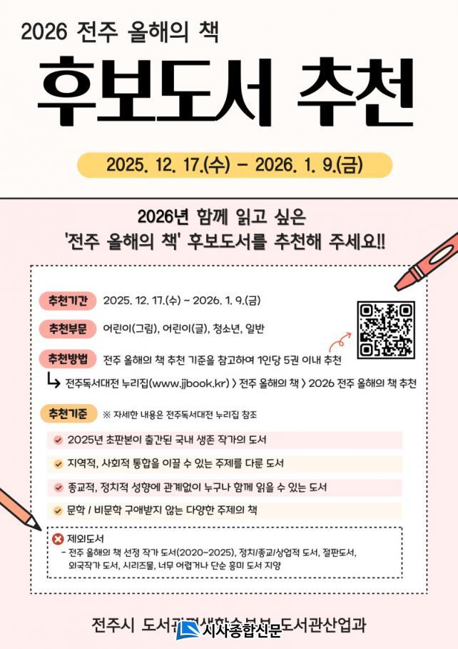 ÀüÁֽô ³»³â 1¿ù 9ÀϱîÁö ¡®2026 ÀüÁÖ ¿ÃÇØÀÇ Ã¥¡¯ È帵µ¼ ½Ã¹Î ÃßõÀ» Á¢¼öÇÑ´Ù°í 19ÀÏ ¹àÇû´Ù.