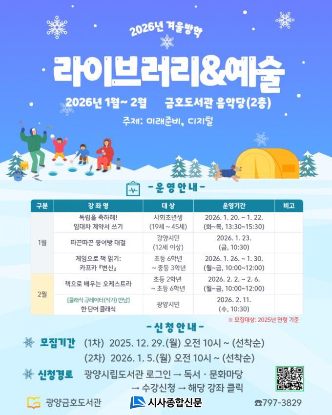 ¡®¶óÀ̺귯¸®&¿¹¼ú¡¯Àº ±ÝÈ£µµ¼°üÀÇ Æ¯È ¹®È¿¹¼ú ÇÁ·Î±×·¥À¸·Î, ¿¹¼ú°ú Ã¥À» ´Ù¾çÇÑ ¹æ½ÄÀ¸·Î ¿¬°áÇØ ½Ã¹ÎÀÇ ¿¹¼úÀû Èï¹Ì¸¦ ³ôÀ̰í âÀÇÀû ¿ª·®À» ÇÔ¾çÇÏ´Â µ¥ ¸ñÀûÀÌ ÀÖ´Ù. ƯÈ÷, »õÇØ¸¦ ¸Â¾Æ ÁغñÇÑ À̹ø ÇÁ·Î±×·¥Àº ¼ö°»ýµéÀÌ µðÁöÅÐ ¿ª·®À» °ÈÇÏ°í ¹®ÈÀû ÀÌÇØ¸¦ ³ôÀÏ ¼ö ÀÖµµ·Ï ´Ù¾çÇÑ °ü½É»ç¸¦ ¹Ý¿µÇÑ ¿¬·Éº° ¸ÂÃãÇü °Á·Π±¸¼ºµÆ´Ù.