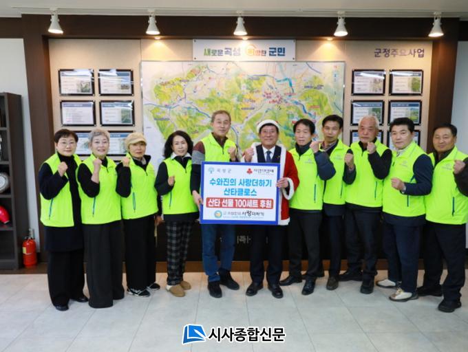»ç´Ü¹ýÀÎ ¼ö¿ÍÁø»ç¶û´õÇϱâ(ÀÌ»çÀå ¾È»ó¼ö)¿¡¼ Àú¼ÒµæÃþÀ» À§ÇÑ °í±Þ °Ü¿ïÀ̺Ò, »ýȰ¿ëǰ µî 100¼¼Æ®¸¦ ±âºÎÇÏ¿´´Ù. ¼ö¿ÍÁøÀÇ »ç¶û´õÇϱâ´Â 2010³âºÎÅÍ °î¼º±º°ú Àο¬À» ¸Î¾î ¸Å³â °î¼º¼¼°è Àå¹ÌÃàÁ¦¿¡ Âü¿©ÇÏ¿© ÀÚ¼±°ø¿¬À¸·Î ¸ð±ÝµÈ ¼º±ÝÀ¸·Î ¿¬¸»¿¡ °î¼º±º ¾î·Á¿î ÀÌ¿ôÀ» À§ÇÑ »êŸ ¼±¹°À» ±âŹÇϰí ÀÖ´Ù. ±âʹÞÀº ¼±¹°¼¼Æ®´Â Çູ³ª´®ºÀ»ç´Ü(ȸÀå ÁøÈ£È¯)¿¡¼ Ãë¾à°èÃþ ¾Æµ¿ ¹× Àú¼Òµæ °¡±¸ 100°¡±¸¿¡ °¢°¢ ¹æ¹®ÇÏ¿© Àü´ÞÇÏ¿´´Ù.