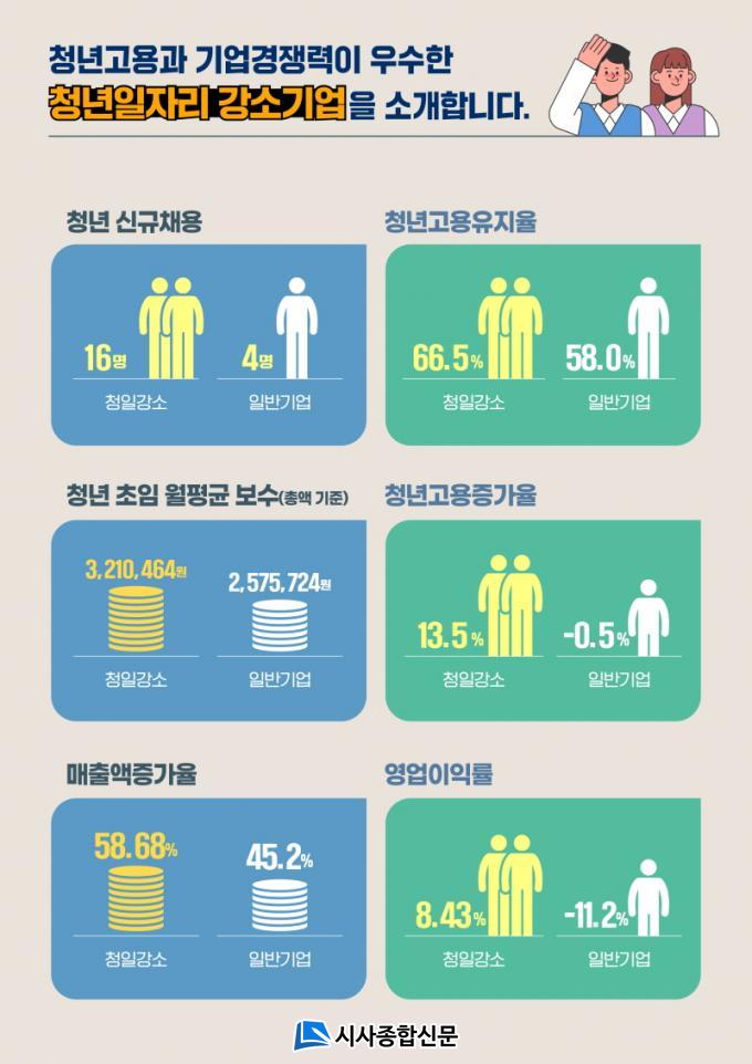 À̹ø¿¡ ¼±Á¤µÈ û³âÀÏÀÚ¸® °¼Ò±â¾÷ 224°³¼Ò¸¦ ÀϹݱâ¾÷°ú ºñ±³¡¤ºÐ¼®ÇÑ °á°ú, û³â°í¿ë Áõ°¡, º¸¼ö, ¸ÅÃâ¾× Áõ°¡À² µî¿¡¼ ¿ì¼öÇÑ ½ÇÀûÀ» º¸¿´´Ù.