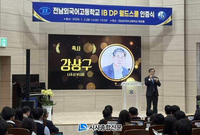 ³ªÁÖ½Ã(½ÃÀå À±º´ÅÂ)´Â Àü³²¿Ü±¹¾î°íµîÇб³°¡ Àü¶ó³²µµ ÃÖÃÊ·Î IB DP ¿ùµå½ºÄð ÀÎÁõÀ» ȹµæÇϰí À̸¦ ±â³äÇÏ´Â ÀÎÁõ½ÄÀ» Áö³ 2ÀÏ Àü³²¿Ü±¹¾î°íµîÇб³¿¡¼ °³ÃÖÇß´Ù°í 5ÀÏ ¹àÇû´Ù.