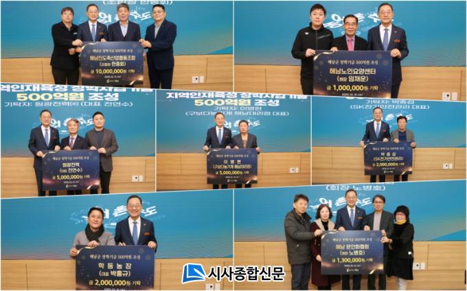¿ÃÇØ·Î 5³â° ±âŹÀ» À̾î¿À°í ÀÖ´Â ÇØ³²ÁøµµÃàÇùÀº 1,000¸¸¿øÀ» ±âŹÇß´Ù. ÇÑÁ¾È¸ Á¶ÇÕÀåÀº¡°¾ÆÀ̵éÀÇ ±³À°È¯°æÀÌ Áö¿ªÀÇ ¹Ì·¡¸¦ Á¿ìÇÑ´Ù´Â »ý°¢À¸·Î, ±º¹Î²² ¹ÞÀº »ç¶ûÀ» ÀåÇбâ±ÝÀ¸·Î µÇµ¹¸®°íÀÚ ÇÑ´Ù¡±°í ¹àÇû´Ù.