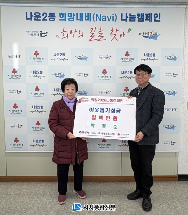 | ¡°µû¶æÇÑ ¸¶À½À» ÀüÇØ¿ä¡±, ±º»ê½Ã ³ª¿î2µ¿ ¾î¸£½Å ÀÌ¿ôµ½±â ¼º±Ý ±âŹ ÁÖÀΰøÀº ¹ÚÁ¤¼ø ¾î¸£½Å, ³ëÀÎ ÀÏÀÚ¸® Âü¿© ¼Òµæ ¸ð¾Æ¡¦¡®¾î·Á¿î ÀÌ¿ôÀ» À§ÇØ µµ¿òÀÌ µÆÀ¸¸é¡¯ |