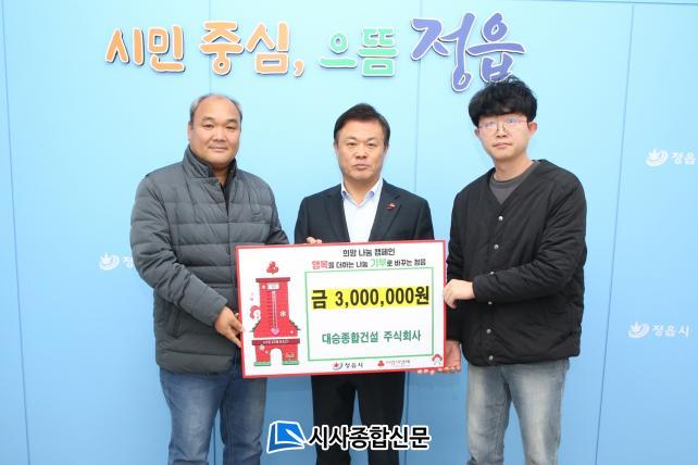 [½Ã»çÁ¾ÇսŹ® = ¿À½ÂÅà ±âÀÚ] ´ë½ÂÁ¾ÇհǼ³ ÁÖ½Äȸ»ç(´ëÇ¥ Á¤Àç¿ø)´Â Áö³ 5ÀÏ Áö¿ª ³» ¾î·Á¿î ÀÌ¿ôÀ» µ½±â À§ÇØ ¼º±Ý 300¸¸¿øÀ» Á¤À¾½Ã¿¡ Àü´ÞÇÏ¸ç µû¶æÇÑ ³ª´®À» ½ÇõÇß´Ù.