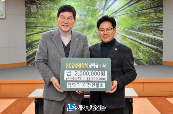 [½Ã»çÁ¾ÇսŹ® = ¿À½ÂÅà ±âÀÚ] (Àç)´ã¾çÀåÇÐȸ(ÀÌ»çÀå Á¤Ã¶¿ø)´Â Áö³ 6ÀÏ ´ã¾ç±º ÀÌÀ忬ÇÕȸ(ȸÀå Á¤¿ë¿À)¿¡¼ Áö¿ªÀÎÀç À°¼ºÀ» À§ÇÑ ÀåÇÐ±Ý 200¸¸ ¿øÀ» ±âŹÇß´Ù°í ¹àÇû´Ù.