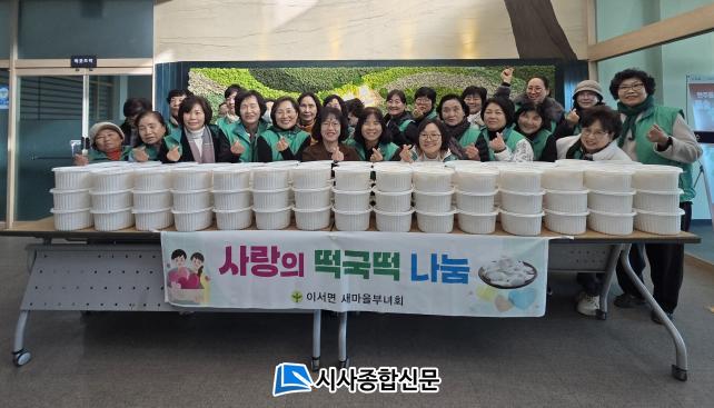 À̼¸é »õ¸¶À»ºÎ³àȸÀå 30¿© ¸íÀÌ Âü¼®ÇÑ °¡¿îµ¥ ºÎ³àȸ°¡ ¸¶·ÃÇÑ ¶±±¹¶± 140Kg¸¦ °ü³» °æ·Î´ç, Ȧ¸ö³ëÀÎ, Àú¼Òµæ °¡±¸ µî 100¿© °¡±¸ ¾î·Á¿î ÀÌ¿ôµé¿¡°Ô Àü´ÞÇß´Ù.