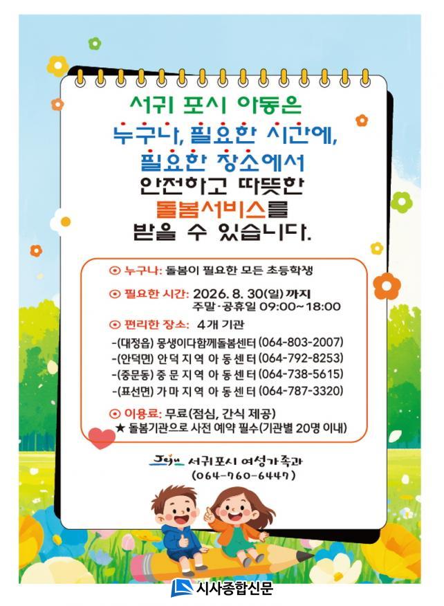 ƯÈ÷, 2026³â ¾Æµ¿ Æ´»õµ¹º½ ½Ã¹ü»ç¾÷Àº Á¦ÁÖµµ°¡ ÃßÁø ÁßÀÎ ÃʵîÁÖ¸»µ¹º½ ¡®²Þ³¶¡¯(µ¿È«ÃÊ24³â, ½Å·ÊÃÊ25³â, ¼º»êÃÊ26³â¿¹Á¤/3°³¼Ò) ¿î¿µ Áö¿ªÀ» °í·ÁÇÏ¿© ¼ºñ½º Áö¿ªÀÇ Áߺ¹¾øÀÌ ¼±ÍÆ÷½Ã Àü Áö¿ª µ¹º½ ½ÃÇàÀ» À§ÇØ µ¿Áö¿ª Áß ÃʵîÇлý ¿¬·É´ë°¡ ¸¹Àº ´ëõ¡¤´ë·ûµ¿¿¡ 1°³¼Ò¸¦ °ø¸ð¸¦ ÅëÇØ ¹ß±¼¡¤Ãß°¡ ¿î¿µ('26. 4¿ù ~ 8¿ù)ÇÒ °èȹÀÌ´Ù.