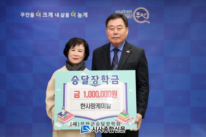 | ÇÑ»ç¶ûÄɹÌÄ® ±è¼øÀÌ ´ëÇ¥, ¹«¾È±º½Â´ÞÀåÇÐ±Ý 100¸¸ ¿ø ±âŹ |
