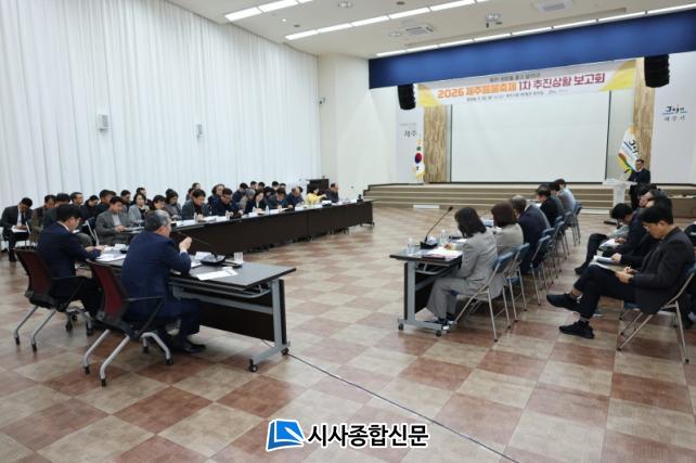 ±è¿Ï±Ù Á¦ÁÖ½ÃÀå ÁÖÀç·Î ÁøÇàµÈ À̹ø º¸°íȸ´Â 2026 Á¦ÁÖµéºÒÃàÁ¦ÀÇ ¼º°øÀûÀÎ °³ÃÖ¸¦ À§ÇÑ ÃàÁ¦ ¼¼ºÎ°èȹ°ú Áغñ»çÇ×À» Á¡°ËÇÏ°í ºÎ¼ °£ Çù·Âü°è¸¦ °ÈÇϱâ À§ÇØ ¸¶·ÃµÆ´Ù.