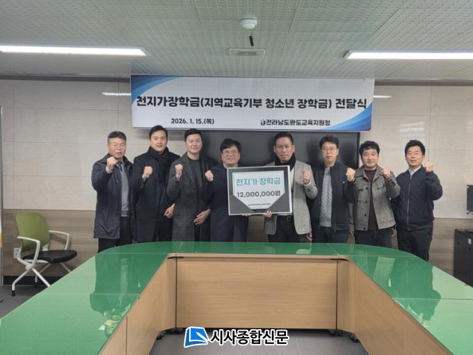 [½Ã»çÁ¾ÇսŹ® = ¿À½ÂÅà ±âÀÚ] ¿Ïµµ¿¡ À§Ä¡ÇÑ ÃµÁö°¡Àüº¹ ¹Ú°æ³² ´ëÇ¥´Â 1¿ù 15ÀÏ, Áö¿ª¿¡¼ ¶æÀ» ÇÔ²²ÇÏ´Â µ¿·áµé°ú ÇÔ²² ¿ÃÇØµµ ¿Ïµµ±³À°Áö¿øÃ»(±³À°Àå ÀÌö¿µ)¿¡ ÀåÇÐ±Ý 1200¸¸¿øÀ» ±âŹÇß´Ù.