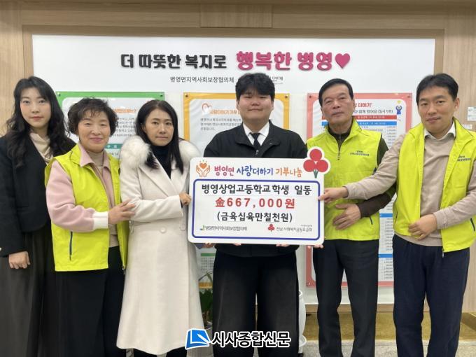 º´¿µ»ó¾÷°í Çлý Àϵ¿Àº Áö³ 15ÀÏ ¼º±Ý 667,000¿øÀ» º´¿µ¸é Áö¿ª»çȸº¸ÀåÇùÀÇü¿¡ ÁöÁ¤±âŹÇß´Ù. ±âŹ½Ä¿¡´Â Á¤¹Ì°æ ±³°¨°ú °û¼ø¿µ »ýȰ¾ÈÀüºÎÀå, Á¤¹Î±¹ ÇлýÀÚġȸÀåÀÌ Âü¼®ÇØ ÇлýµéÀÇ ¶æÀÌ ´ã±ä ¼º±ÝÀ» Àü´ÞÇß´Ù.