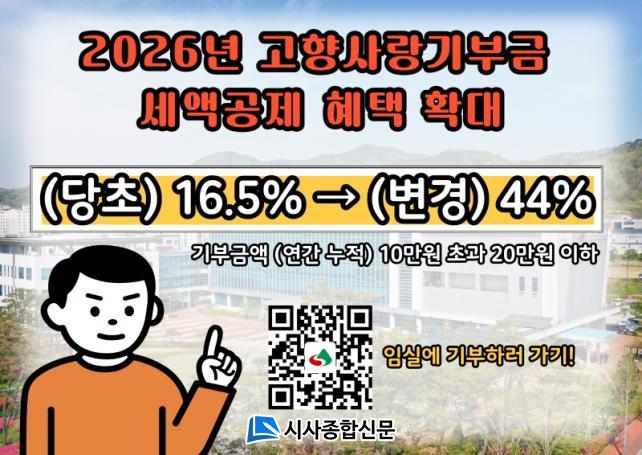 ¿ÃÇØºÎÅÍ °íÇâ»ç¶û±âºÎÁ¦ÀÇ ¼¼¾×°øÁ¦ Á¦µµ°¡ ÇÑÃþ °ÈµÈ´Ù. ±âÁ¸¿¡´Â 10¸¸¿øÀ» ÃʰúÇÏ´Â ±âºÎ±Ý Àü¾×¿¡ ´ëÇØ 16.5%ÀÇ °øÁ¦À²ÀÌ Àû¿ëµÆÀ¸³ª, ¿ÃÇØºÎÅÍ´Â 10¸¸¿ø Ãʰú 20¸¸¿ø ÀÌÇÏ ±¸°£¿¡ ÇÑÇØ °øÁ¦À²ÀÌ 44%·Î ´ëÆø »óÇâÁ¶Á¤µÆ´Ù.