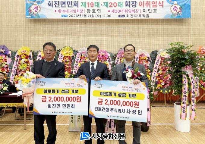 [½Ã»çÁ¾ÇսŹ® = ¿À½ÂÅà ±âÀÚ] ÀåÈﱺ ȸÁø¸é Áö¿ª»çȸº¸ÀåÇùÀÇü(°øµ¿À§¿øÀå ÀåÂù¼®¡¤À̹ÎÈ£)´Â Áö³ 21ÀÏ È¸Áø¸é ´Ù¸ñÀûȦ¿¡¼ Áö¿ª ¼Ò¿Ü°èÃþÀ» À§ÇÑ ÀÌ¿ôµ½±â ¼º±Ý ±âʽÄÀ» °³ÃÖÇß´Ù°í ¹àÇû´Ù.