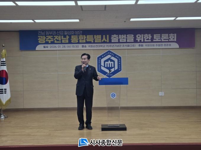 ÁÖöÇö ÀÇ¿øÀº ³¡À¸·Î ¡°Àü³²¡¤±¤ÁÖ ÅëÇÕÀº ÇàÁ¤±¸¿ªÀÇ °áÇÕÀ» ³Ñ¾î »ê¾÷ÀÇ Áöµµ¿Í ÇàÁ¤, °æÁ¦ÀÇ È帧À» ±Ùº»ÀûÀ¸·Î ¹Ù²Ù´Â Å« Àüȯ¡±À̶ó¸ç, ¡°Àü³² µ¿ºÎ±Ç »ê¾÷ÀÌ ´ëÇѹα¹ ±¹°¡ ±â°£»ê¾÷À¸·Î¼ÀÇ ¿ªÇÒÀ» Áö¼ÓÇÏ°í ¹Ì·¡ »ê¾÷À¸·Î µµ¾àÇÒ ¼ö ÀÖµµ·Ï ±¹È¸ Â÷¿ø¿¡¼ Á¤Ã¥Àû¡¤Á¦µµÀû µÞ¹ÞħÀ» ¾Æ³¢Áö ¾Ê°Ú´Ù¡±°í ¸»Çß´Ù.