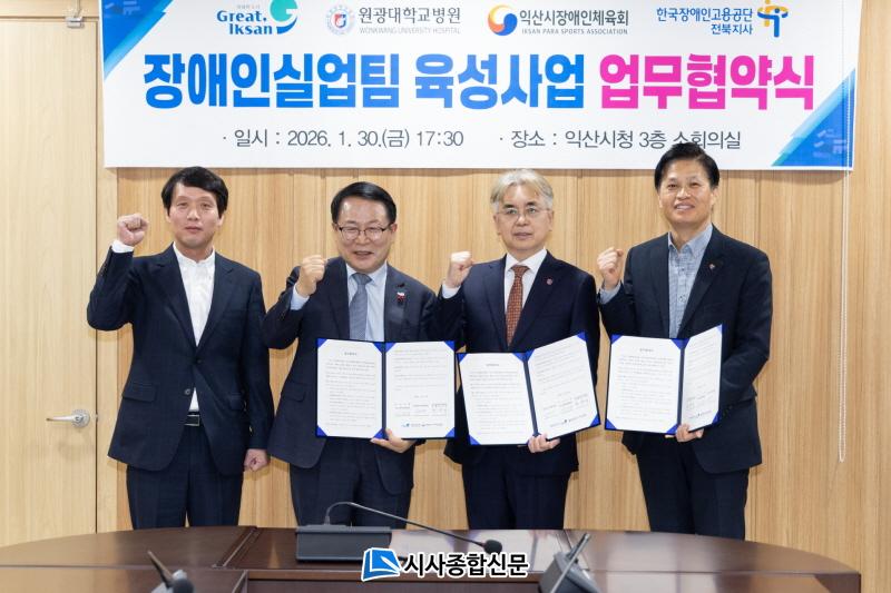 ÀÍ»ê½Ã´Â 30ÀÏ ½Ãû ȸÀǽǿ¡¼ ¿ø±¤´ëÇб³º´¿ø, ÀÍ»ê½ÃÀå¾ÖÀÎüÀ°È¸, Çѱ¹Àå¾ÖÀΰí¿ë°ø´Ü ÀüºÏÁö»ç¿Í ÇÔ²² 'Àå¾ÖÀνǾ÷ÆÀ À°¼º ¹× °í¿ë Ȱ¼ºÈ¸¦ À§ÇÑ ¾÷¹«Çù¾à'À» ü°áÇß´Ù.