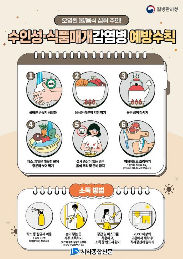 ¼öÀμº¡¤½Äǰ¸Å°³ °¨¿°º´Àº ¿À¿°µÈ ¹°À̳ª ½ÄǰÀ» ¼·ÃëÇÏ¿© °¨¿°µÇ¸ç, ÁÖ·Î ¼³»ç, º¹Åë, ±¸Åä µî À§Àå°ü Áõ»óÀÌ ³ªÅ¸³ª´Â °¨¿°º´ÀÌ´Ù. ´ëÇ¥ÀûÀ¸·Î »ì¸ð³Ú¶ó±Õ °¨¿°Áõ, ºñºê¸®¿ÀÆÐÇ÷Áõ, ³ë·Î¹ÙÀÌ·¯½º °¨¿°Áõ µîÀÌ ÀÖÀ¸¸ç, À§»ýÀûÀ¸·Î Á¶¸®µÇÁö ¾Ê¾Ò°Å³ª Àå½Ã°£ »ó¿Â¿¡ º¸°üµÈ À½½ÄÀ» ¼·ÃëÇÒ ¶§ ¹ß»ý °¡´É¼ºÀÌ ³ô¾Æ °¢º°ÇÑ ÁÖÀǰ¡ ÇÊ¿äÇÏ´Ù.