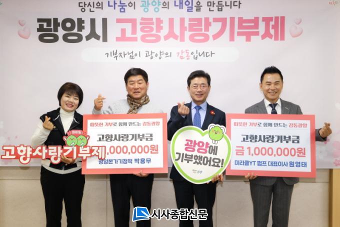 À̳¯ Àü´Þ½Ä¿¡´Â ¹Ì¶óŬYTÆßÇÁ ¿ø¿µÅ ´ëÇ¥¿Í ±¤¾çº»°¡±âÁ¤¶± ¹Ú¿ë¹« ´ëÇ¥°¡ Âü¼®ÇØ °¢ 100¸¸ ¿ø¾¿ ÃÑ 200¸¸ ¿øÀÇ °íÇâ»ç¶û±âºÎ±ÝÀ» ½Ã¿¡ Àü´ÞÇß´Ù.