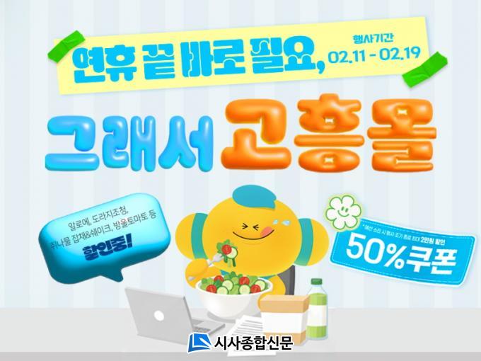 °íÈï¸ôÀº ¿À´Â 2¿ù 11ÀϺÎÅÍ 19ÀϱîÁö 9Àϰ£ ¡¸¿¬ÈÞ ³¡ ¹Ù·Î ÇÊ¿ä, ±×·¡¼ °íÈï¸ô¡¹ ±âȹÀüÀ» ¿°í ¾Ë·Î¿¡, µµ¶óÁöû, Ã볪¹° ¼ÎÀÌÅ© µî °Ç° ¸Ô°Å¸®¸¦ ÃÖ´ë 50% ÇÒÀÎ ÆÇ¸ÅÇÑ´Ù°í ¹àÇû´Ù.
