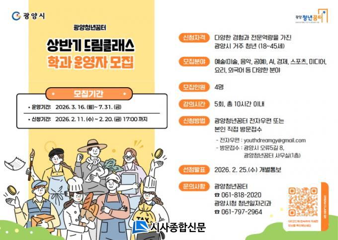 2026³â »ó¹Ý±â µå¸²Å¬·¡½º´Â ÃÑ 4°³ °Á¸¦ ¾ö¼±ÇØ 3¿ùºÎÅÍ ÁýÁß ¿î¿µÇÒ ¿¹Á¤À̸ç, ¼±Á¤µÈ °Á´ °ÁÂÀÇ ¼º°Ý°ú ¿î¿µ ½Ã±â¿¡ µû¶ó 2½Ã°£ ³»¿ÜÀÇ °ÀǸ¦ ÃÑ 5ȸ¾¿ ¿î¿µÇÑ´Ù.