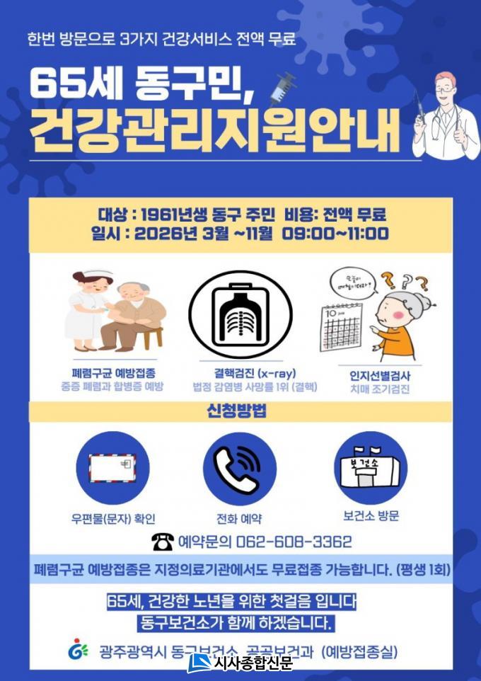 »ç¾÷ ´ë»óÀº ¿ÃÇØ 65¼¼°¡ µÇ´Â 1961³â»ý ÁֹΠ¾à 1,600¸íÀ̸ç, 3¿ùºÎÅÍ º»°ÝÀûÀ¸·Î ½ÃÇàµÉ ¿¹Á¤ÀÌ´Ù. ÀÌ¿ë ÀýÂ÷´Â ¿ì¼± 2¿ù ¸»¿¡ ´ë»óÀÚ¿¡°Ô ÅëÇÕ ¾È³»¹®À» ¿ìÆíÀ¸·Î ¹ß¼ÛÇϰí, ¾È³»¹®À» ¹ÞÀº ÁÖ¹ÎÀÌ º¸°Ç¼Ò ¿¹¹æÁ¢Á¾½Ç·Î ÀüÈÇØ ¿¹¾àÇÑ µÚ, Á¤ÇØÁø ¿¹¾àÀÏ¿¡ º¸°Ç¼Ò¸¦ ¹æ¹®ÇØ ÅëÇÕ °Ç°Á¡°ËÀ» ¹Þ´Â ¼ø¼·Î ÁøÇàµÈ´Ù.