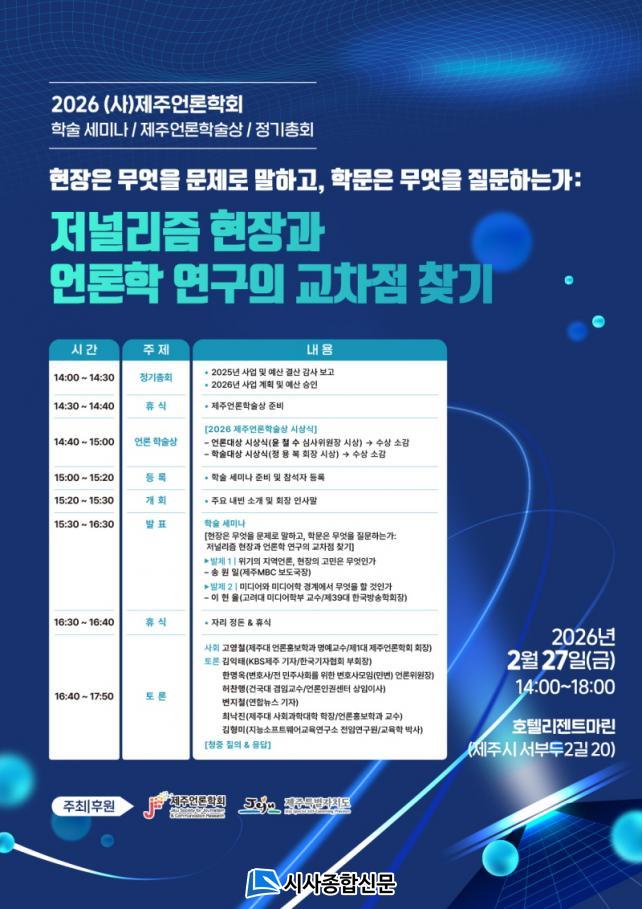 ¼¼¹Ì³ª¿¡ ¾Õ¼ ¿ÀÈÄ 2½Ã 40ºÐ¿¡´Â <2026 Á¦ÁÖ¾ð·ÐÇмú»ó> ½Ã»ó½ÄÀÌ ¿¸°´Ù.