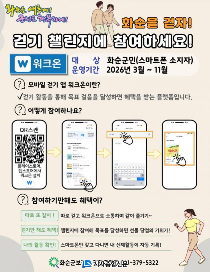[½Ã»çÁ¾ÇսŹ® = ¿À½ÂÅà ±âÀÚ] È­¼ø±º(±º¼ö ±¸º¹±Ô)Àº 27ÀÏ ±º¹ÎÀÇ ÀÏ»ó ¼Ó °È±â ½ÇõÀ» À¯µµÇÏ°í °È±â ¹®È­ È®»êÀ» À§ÇØ ¿À´Â 3¿ùºÎÅÍ 11¿ù±îÁö ¸ð¹ÙÀÏ °È±â ¾Û ¡®¿öÅ©¿Â¡¯À» Ȱ¿ëÇÑ ±º¹Î °È±â 縰Áö¸¦ ¿î¿µÇÑ´Ù°í ¹àÇû´Ù.