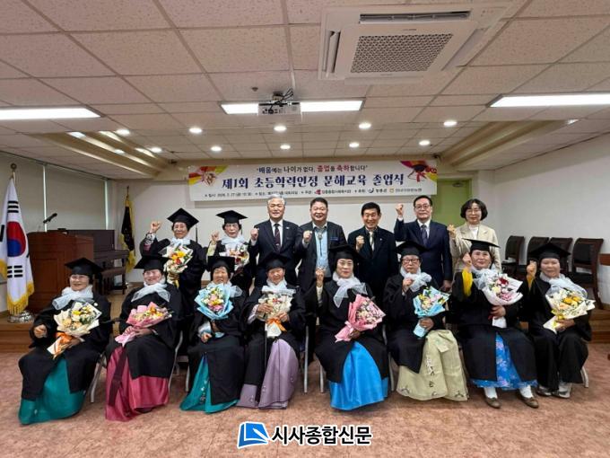 À̹ø Á¹¾÷½Ä¿¡¼´Â ¹è¿òÀÇ ±âȸ¸¦ ³õÃÆ´ø ¾î¸£½Å 12¸íÀÌ 3³â°£ ÇÑ±Û Àб⡤¾²±â¿Í ±âÃÊ ¹®ÇØ ±³À°°úÁ¤À» ¼º½ÇÈ÷ À̼öÇϰí Ãʵî Çз ÀÎÁ¤¼¸¦ ¹Þ¾Ò´Ù. ƯÈ÷ ¿ì¼öÇÑ ¼ºÀûÀ¸·Î °úÁ¤À» ¸¶Ä£ Á¹¾÷»ý 2¸í¿¡°Ô´Â ±³À°Àå »óÀåÀÌ ¼ö¿©µÅ Àǹ̸¦ ´õÇß´Ù.