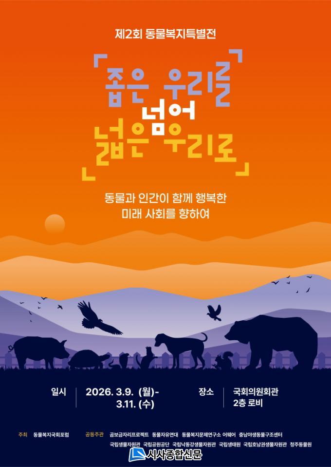 À̹ø Àü½Ãȸ¿¡´Â ±¹¸³È£³²±Ç»ý¹°ÀÚ¿ø°üÀ» Æ÷ÇÔÇØ µ¿¹°º¹Áö±¹È¸Æ÷·³(ÇÑÁ¤¾Ö ±¹È¸ÀÇ¿ø µî), ±¹¸³»ýÅ¿ø, ±¹¸³»ý¹°ÀÚ¿ø°ü, ±¹¸³³«µ¿°»ý¹°ÀÚ¿ø°ü, ±¹¸³°ø¿ø°ø´Ü, ûÁÖµ¿¹°¿ø, Ãæ³²¾ß»ýµ¿¹°±¸Á¶¼¾ÅÍ µîÀÇ °ø°ø±â°ü°ú µ¿¹°ÀÚÀ¯¿¬´ë, µ¿¹°º¹Áö¹®Á¦¿¬±¸¼Ò ¾î¿þ¾î, °õº¸±ÝÀÚ¸®ÇÁ·ÎÁ§Æ® µîÀÇ ½Ã¹Î´Üü°¡ °øµ¿À¸·Î Âü¿©ÇÑ´Ù.